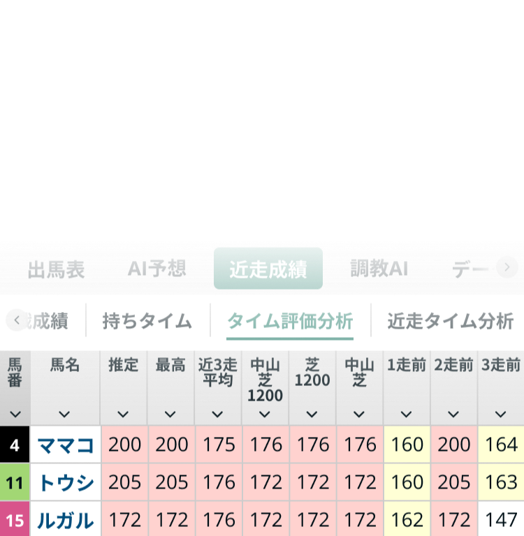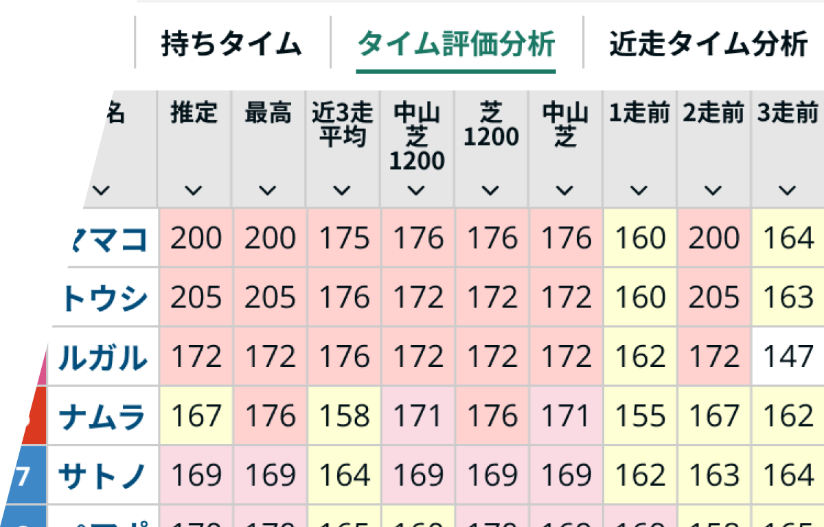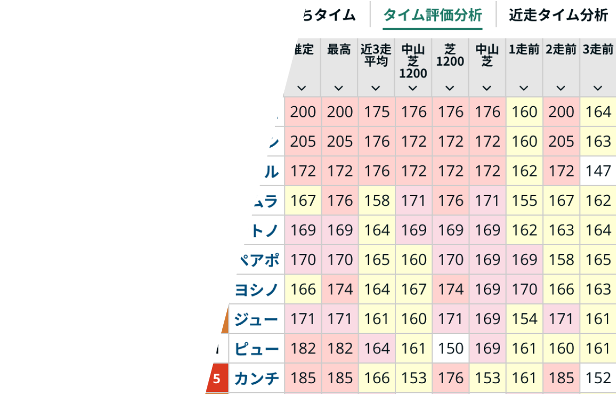 各馬の「持ちタイム」や近走成績を独自視点で評価した「タイム評価分析」。