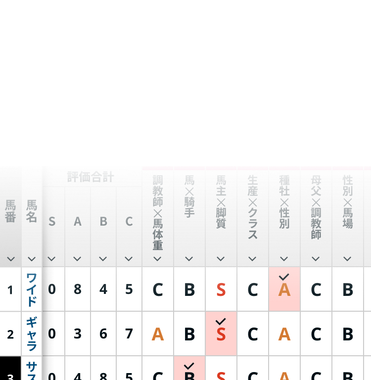 データ分析:出馬表(観点別の評価掲載)