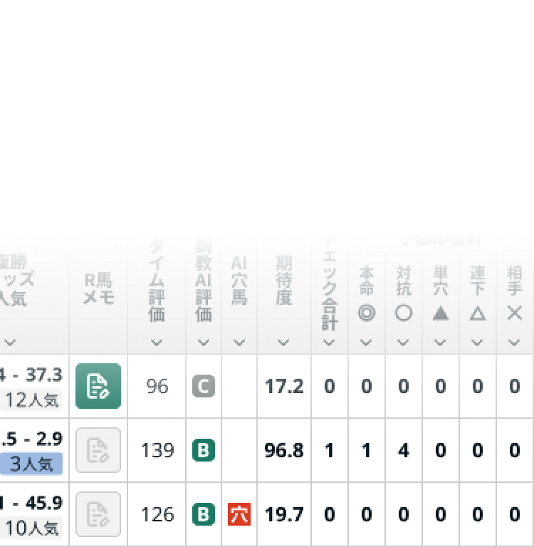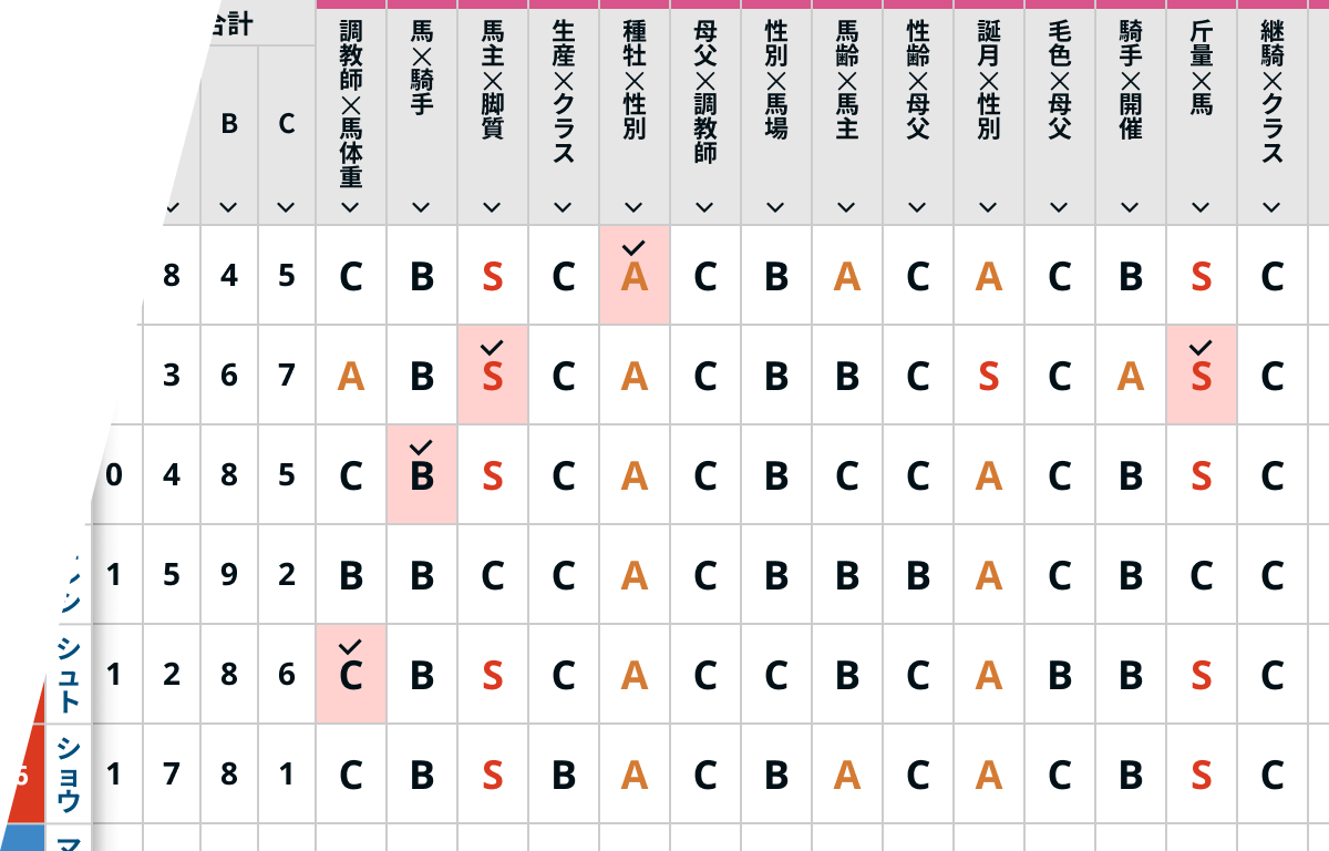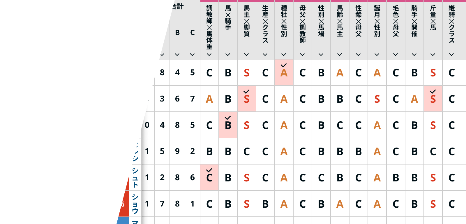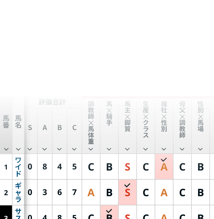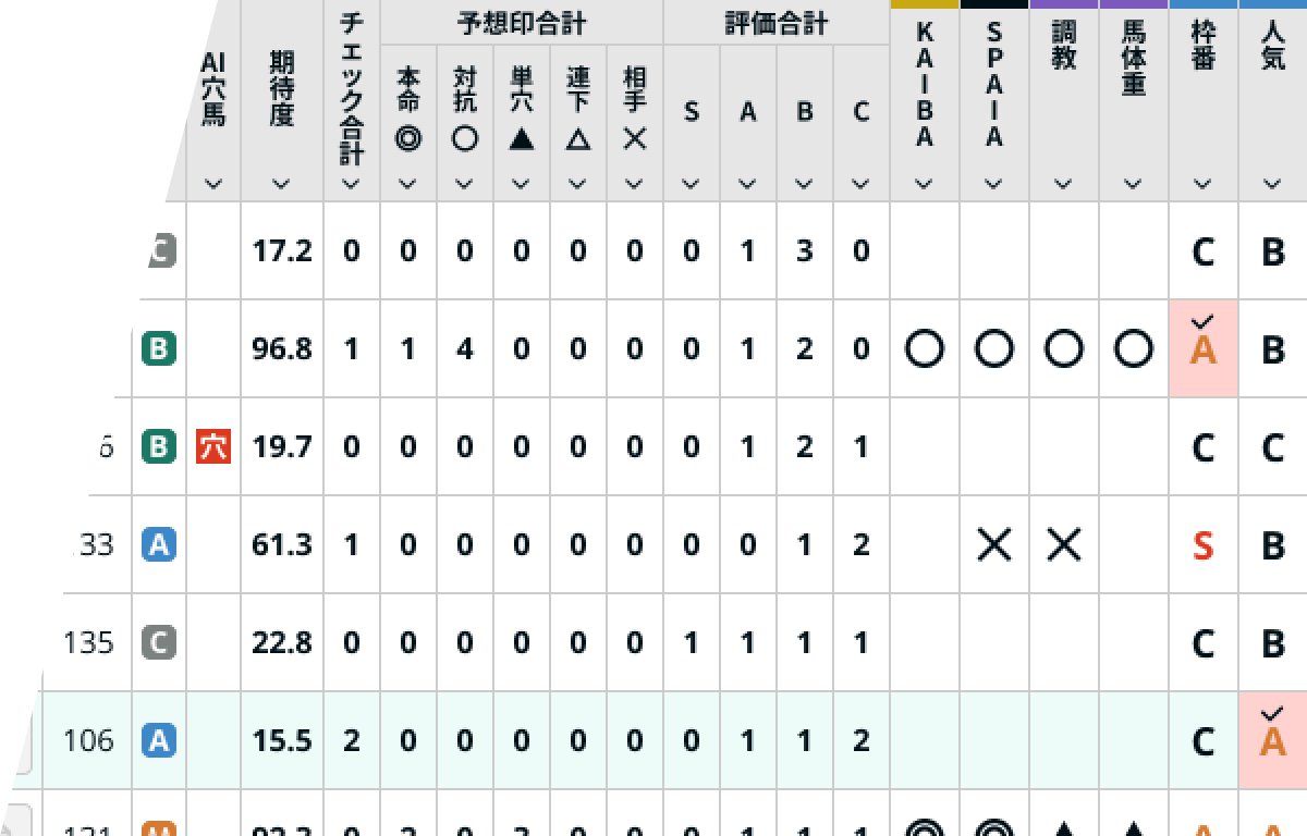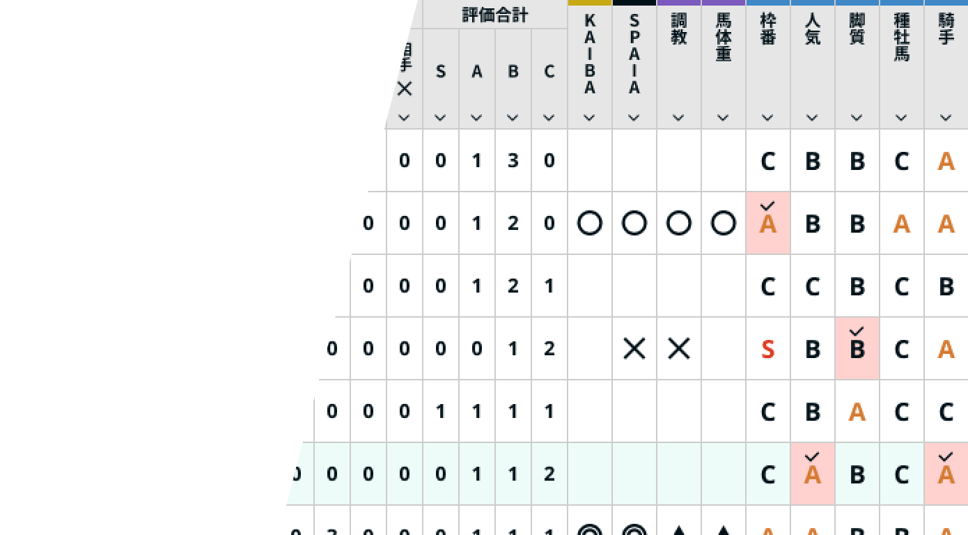 レース好条件の馬や調子が不安定な馬を一目で把握でき、