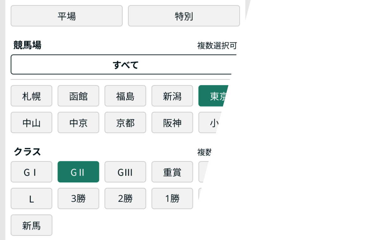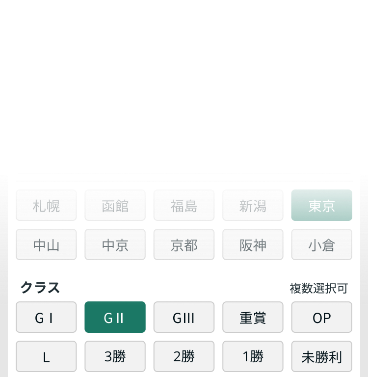 情報量の多いページに「条件絞り込み機能」を搭載。予想したいレースに合わせて傾向やデータを簡単に確認・分析できます。