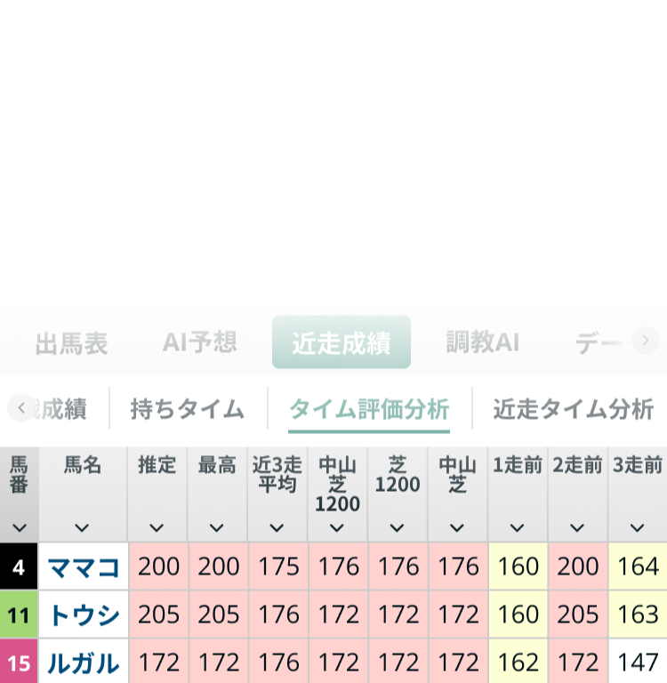 各馬の「持ちタイム」や近走成績を