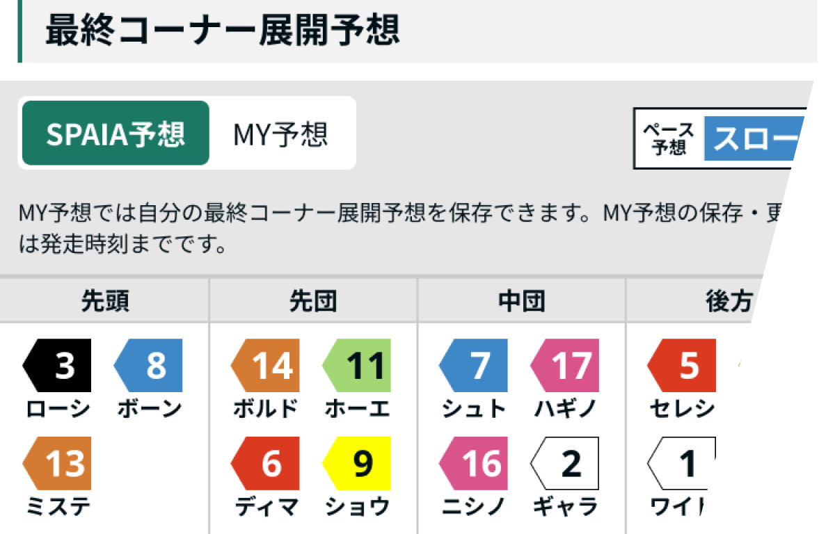 出馬表:最終コーナー展開予想(SPAIA予想)